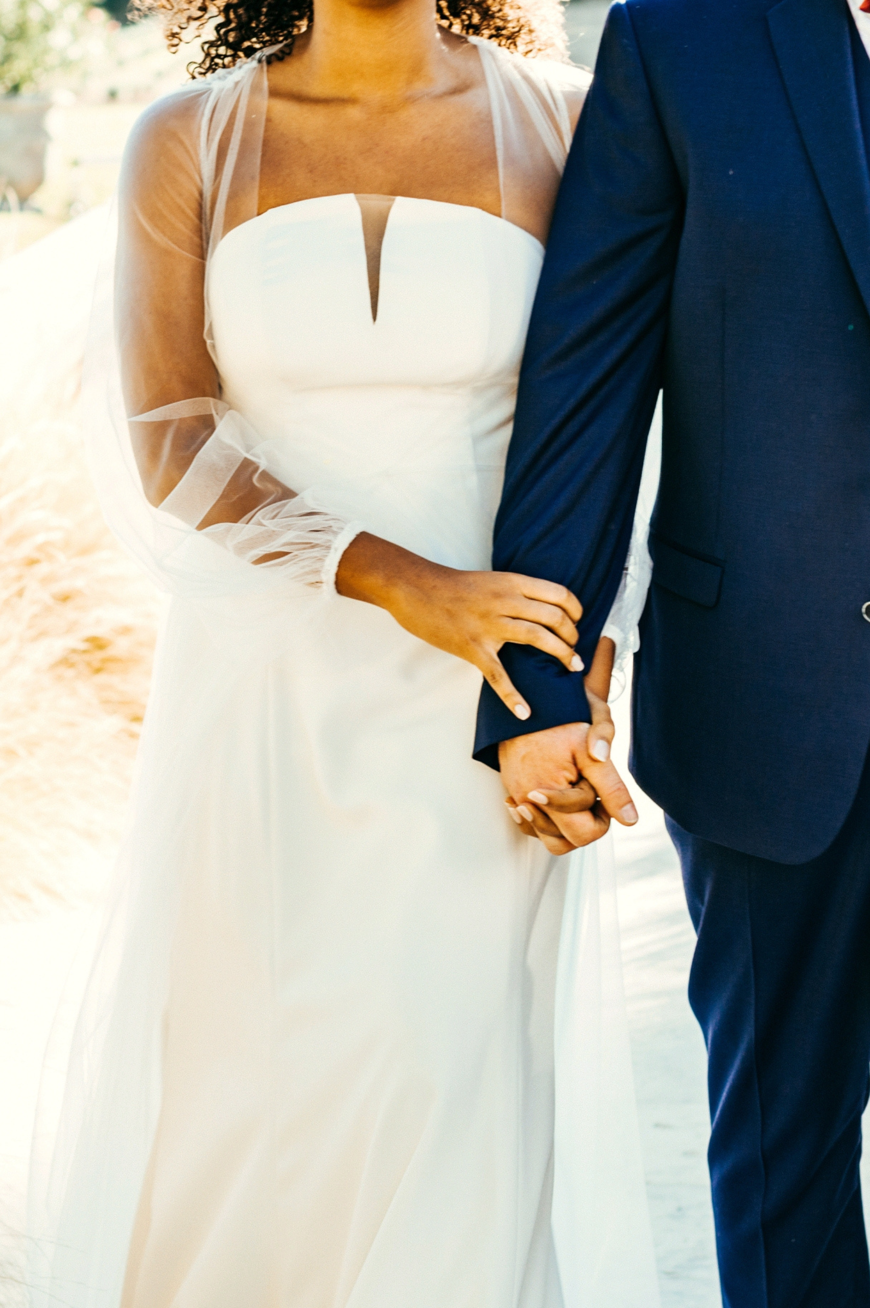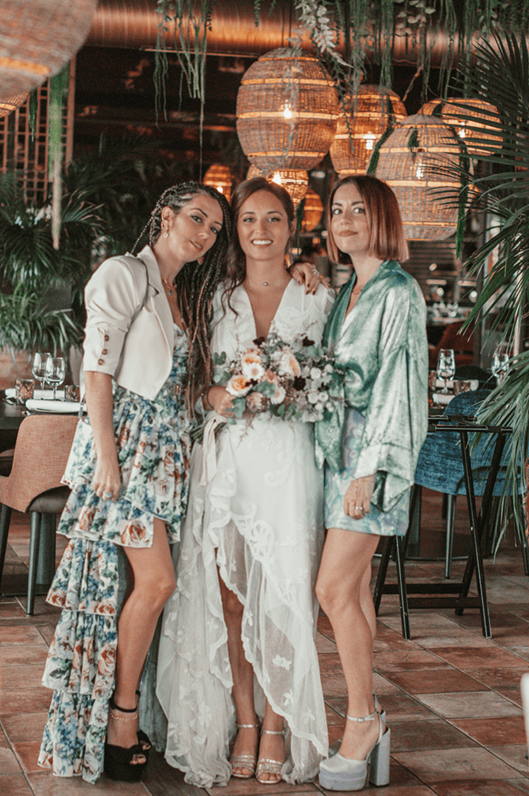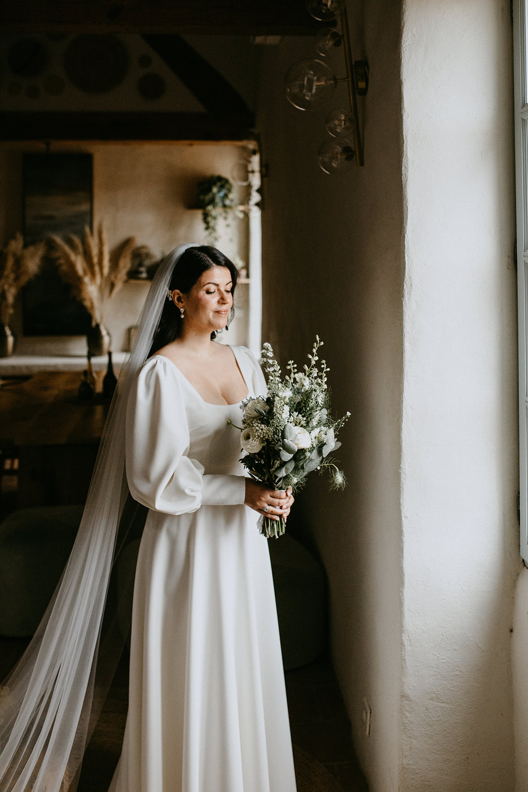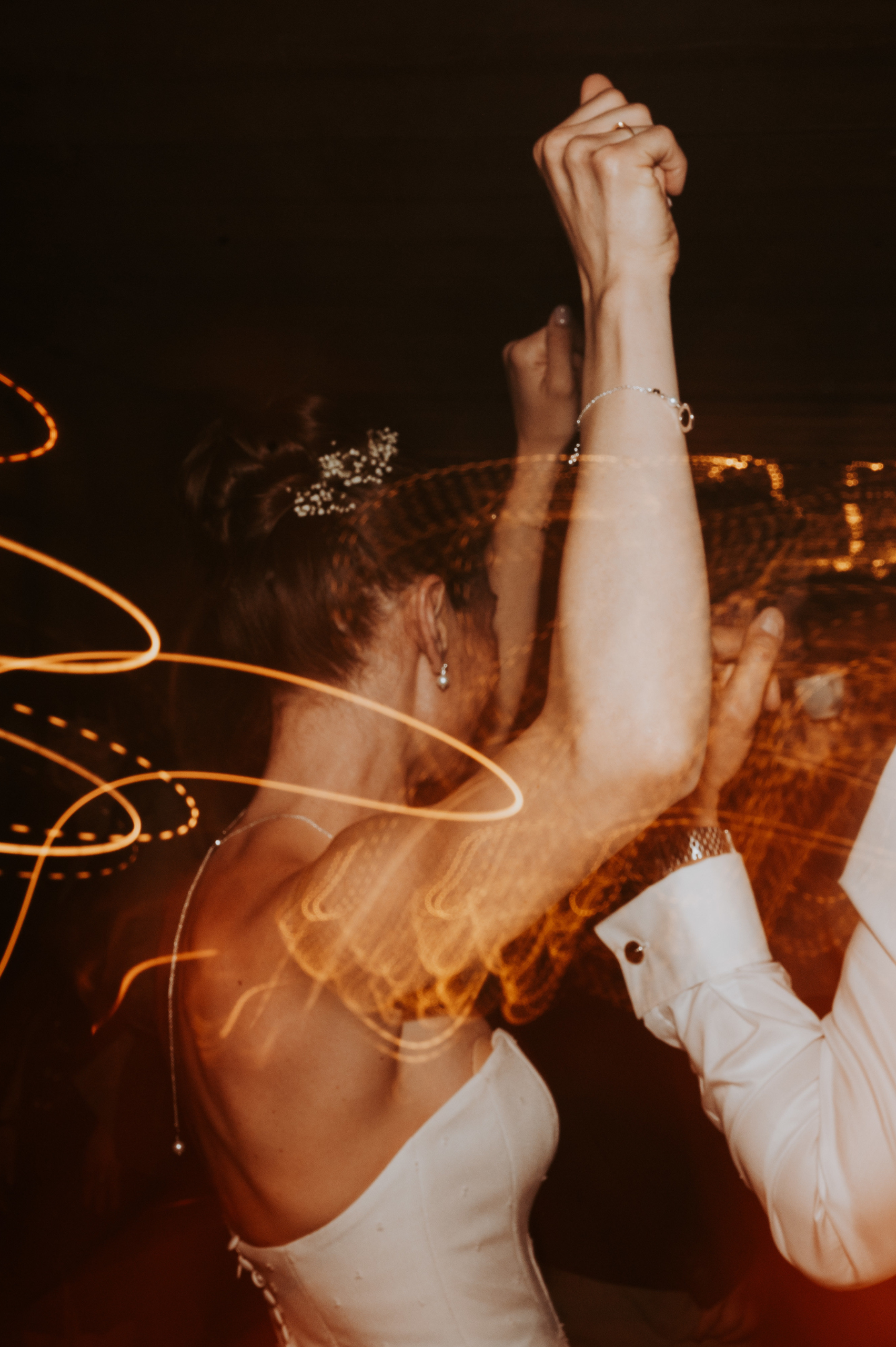 Pour révéler la personnalité solaire et audacieuse de Magali, nous avons imaginé des pièces fortes pour chaque instant de son Jour J. Des manches bouffantes en taffetas de soie pour une allure résolument mode à la mairie, un voile fleuri et coloré où chaque pétale est cousue main pour une entrée romantique à l’église, et enfin une robe somptueusement rebrodée de fleurs éclatantes, pensée pour la rendre inoubliable.