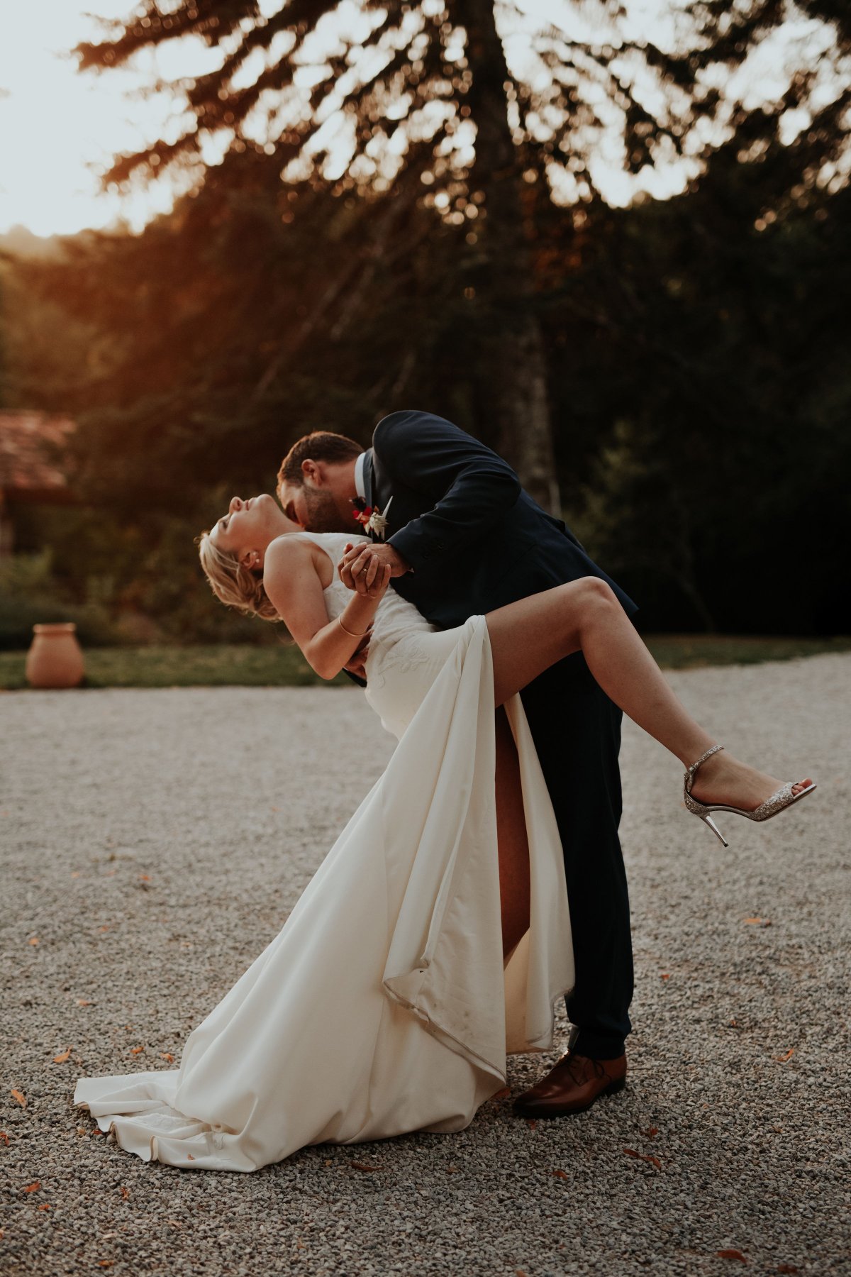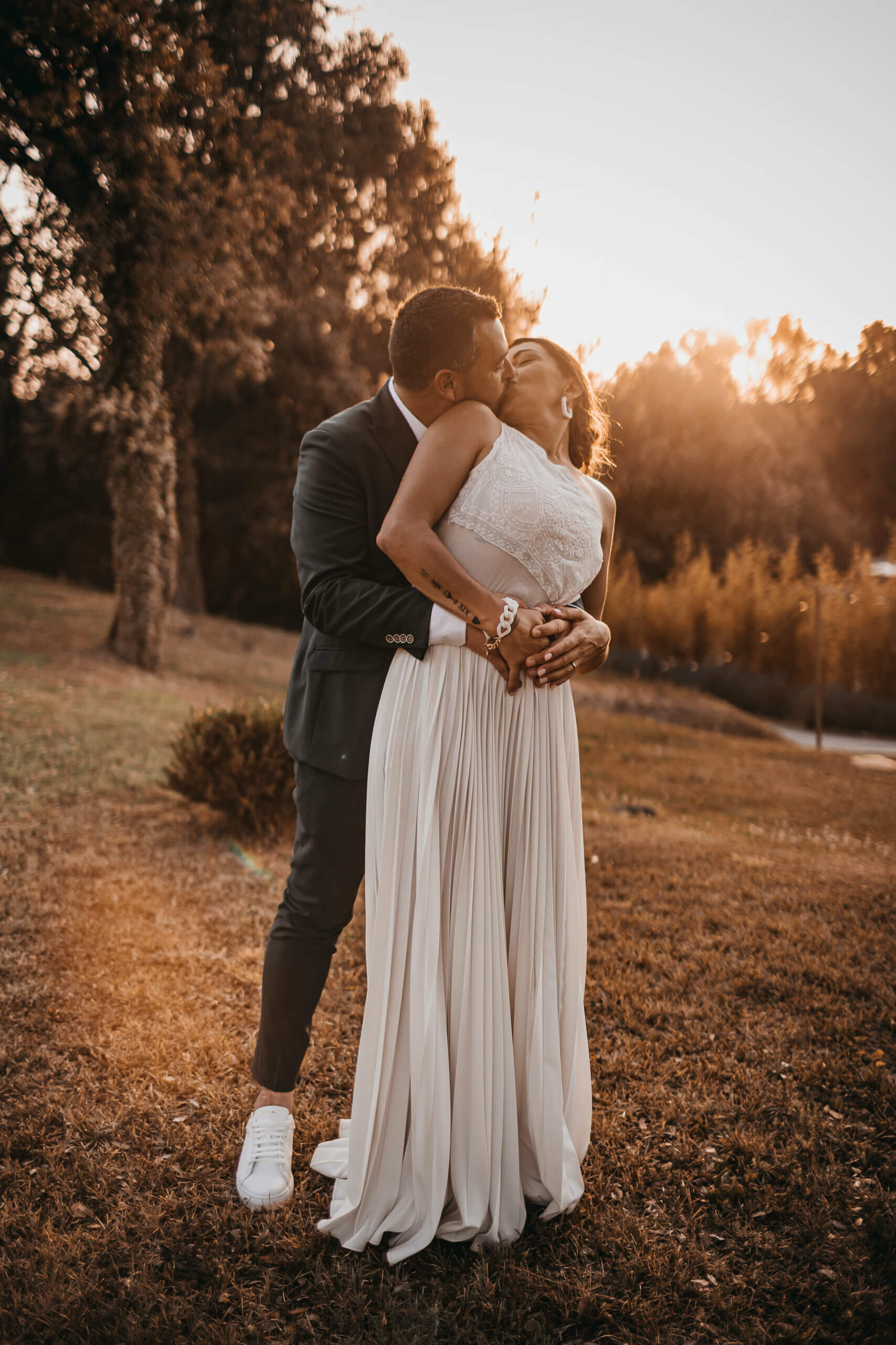 Eva s’est démarquée avec sa robe en deux parties prévue pour chaque moments de son Jour J. Mousseline légère et Dentelle de Calais pour une cérémonie élégante. Corset en plumetis et bas fluide en Crêpe pour profiter librement de la soirée.